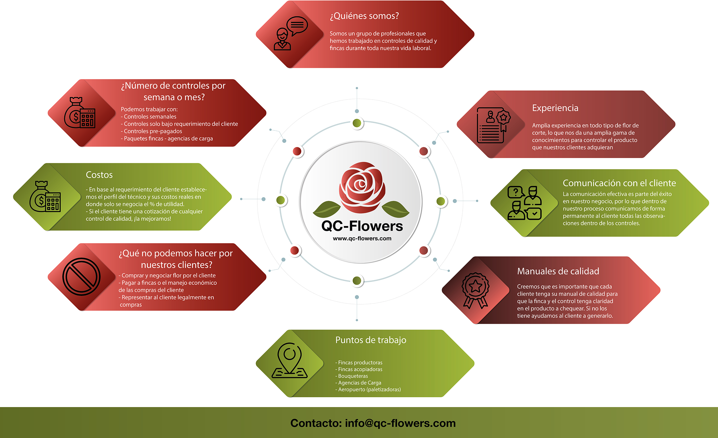 QC-FLOWERS es una empresa que nace en Ecuador en el año 2018, depués de que varios profesionales y trabajadores con experiencia en control de calidad se junten para dar ideas y soluciones a varios clientes a los que prestaban sus servicios de forma individual.